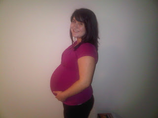 I am really happy that we took this class I think we both learned a lot and I am way more prepared for this whole child-birth and new mom thing that we are about to experience. (39 DAYS aahhhh!!!) I am freaking out! I've started counting days by the way because it freaks me out less. Another reason I loved taking this class was because I didn't feel huge around a whole bunch of pregnant women and we got to compare stories and feelings which was really nice. Here is a picture of my bump this week. I am shocked at how much it grows every week.